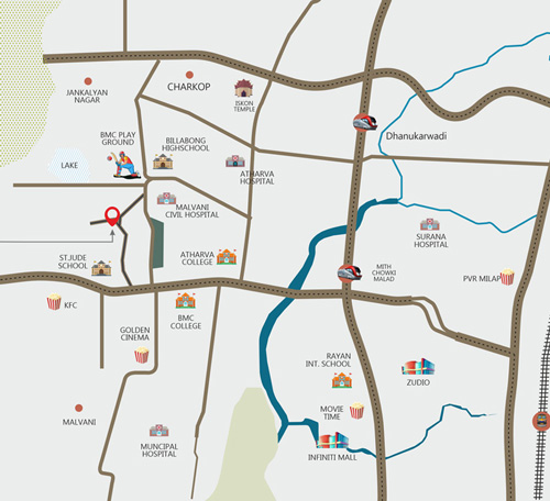 - Malad Railway Stn - 3.6 Kms